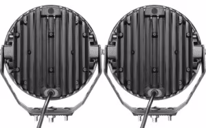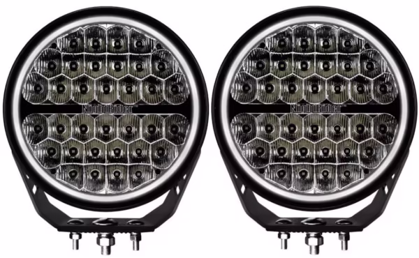 Enjoy exceptional street-legal* performance in a compact and sleek design with the Edgeless Pro 9R Auxiliary Driving Light Kit (N9REME). Each 9″ round light delivers over 10,000 effective lumens, providing powerful illumination. ECE R112 certified for its auxiliary driving beam and ECE R7 certified for its Halo daytime running lights, this kit meets top safety and performance standards. Its edgeless design helps prevent snow and ice buildup, while its slim profile, under 3.5″ in depth, ensures a low-profile fit.