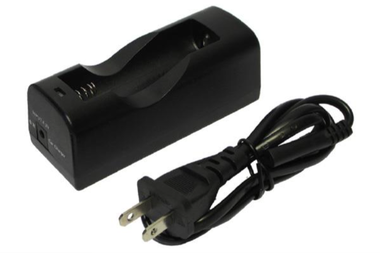 Charges one 18650 Li-Ion Battery for your NightFire Flashlight. Simply plug into a 120V Wall Outlet or use the included 12V accessory adapter plug.