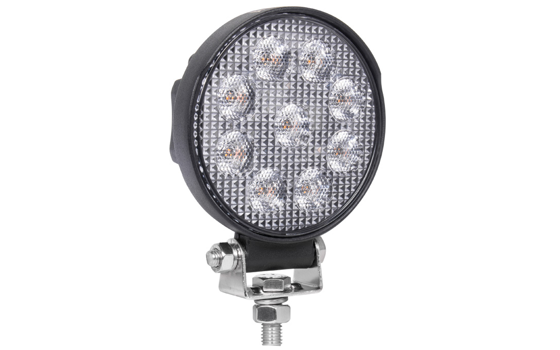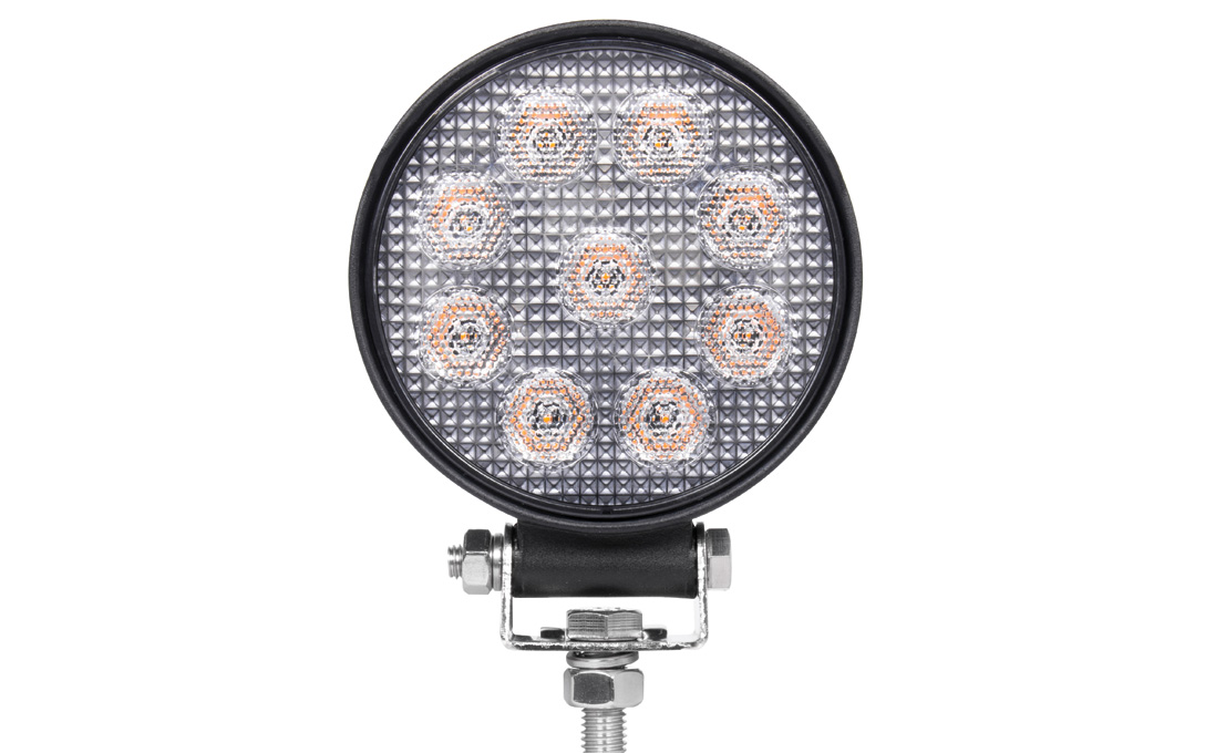 The AMBER 4.5″ Round Work Light (NOS27RDA) from NightRider is great for use on equipment, and come with a modest price tag but lots of light output. IP67 Rated.