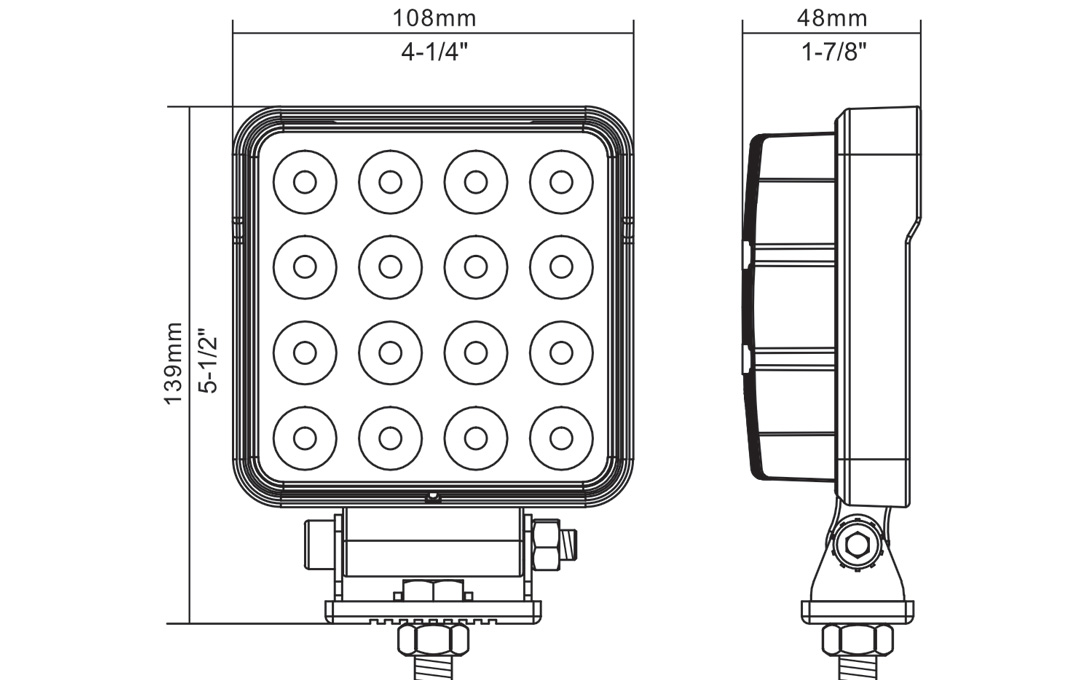 The AMBER 4″ Square Work Light (NOS48A) from NightRider is great for use on equipment, and come with a modest price tag but lots of light output. IP67 Rated.