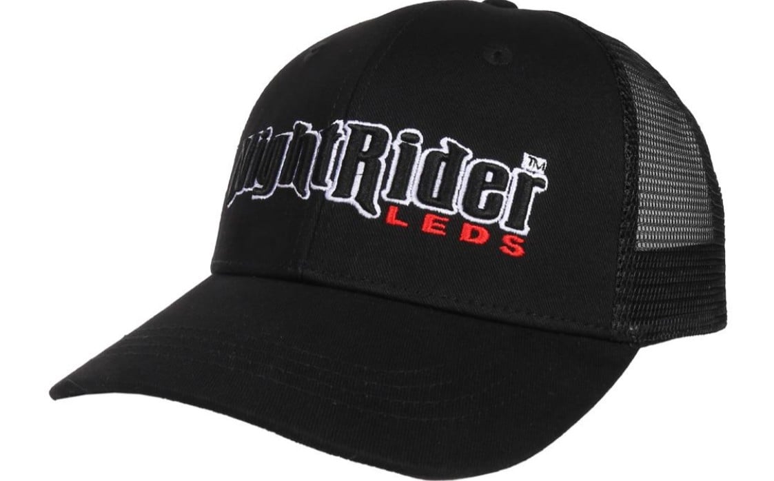 NightRider Trucker Hat with NightRider logo in front, with a mesh back and adjustable strap.