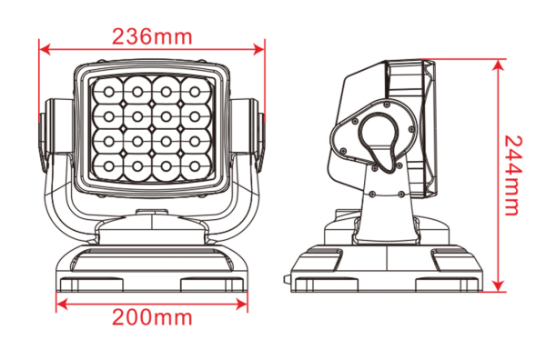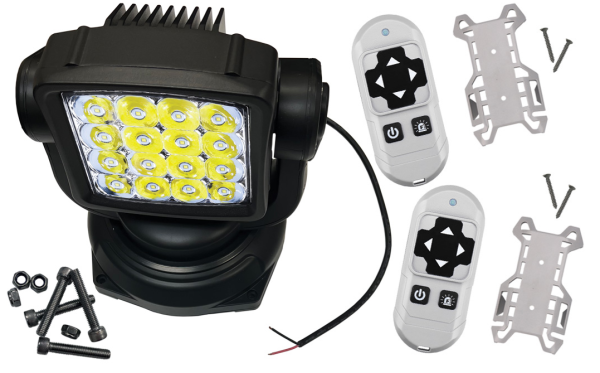 Included with the search light are two remote controls, hardware for secure mounting, and a cradle for easy remote access that can be installed on your vehicle’s dashboard. The package also contains 2 x 12V 23A batteries for the remote and pigtail wiring, providing all the necessary components for quick and simple installation.